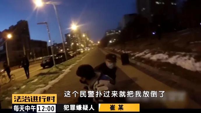 民警劉異一再勸阻,但是崔某始終沒有停下的意思,氣急敗壞之下,崔某開始對民警動粗,上來就把民警的執法記錄儀打掉了。