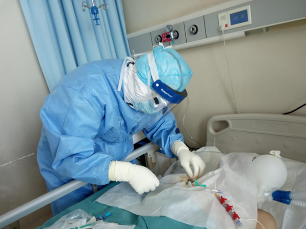 但病毒不會等你嚴陣以待再發動進攻。病房完成改造的第二天,就有兩名患者出現緊急狀況,需要搶救性氣管插管。這是一場硬仗。操作過程中,患者氣道開放,醫生距離患者不到20厘米,被感染的風險非常大。整個過程必須在幾分鐘內完成,稍有猶豫,患者就可能面臨生命危險。