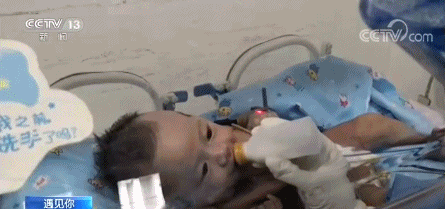 河南省兒童醫院隔離病區護士 陳彩麗:寶寶現在體重是4公斤,奶量每次能吃到65毫升,三個小時吃一次。