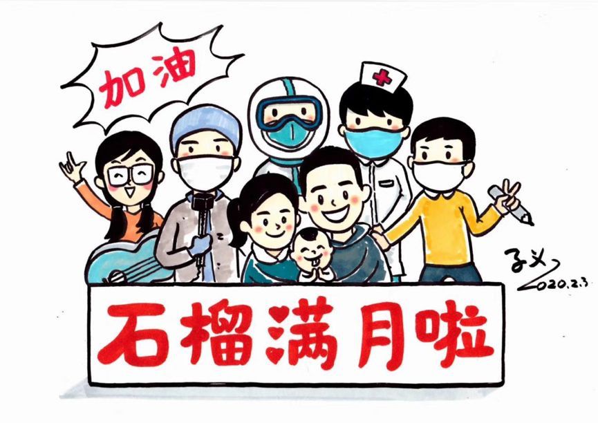 △插畫師網友為“小石榴”手繪“滿月全家?!?/font>