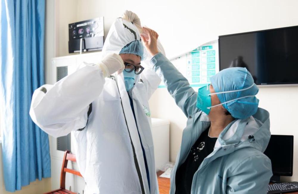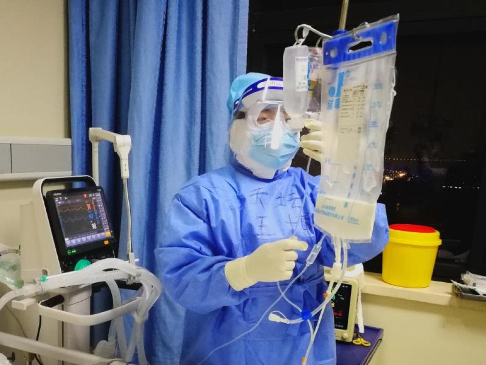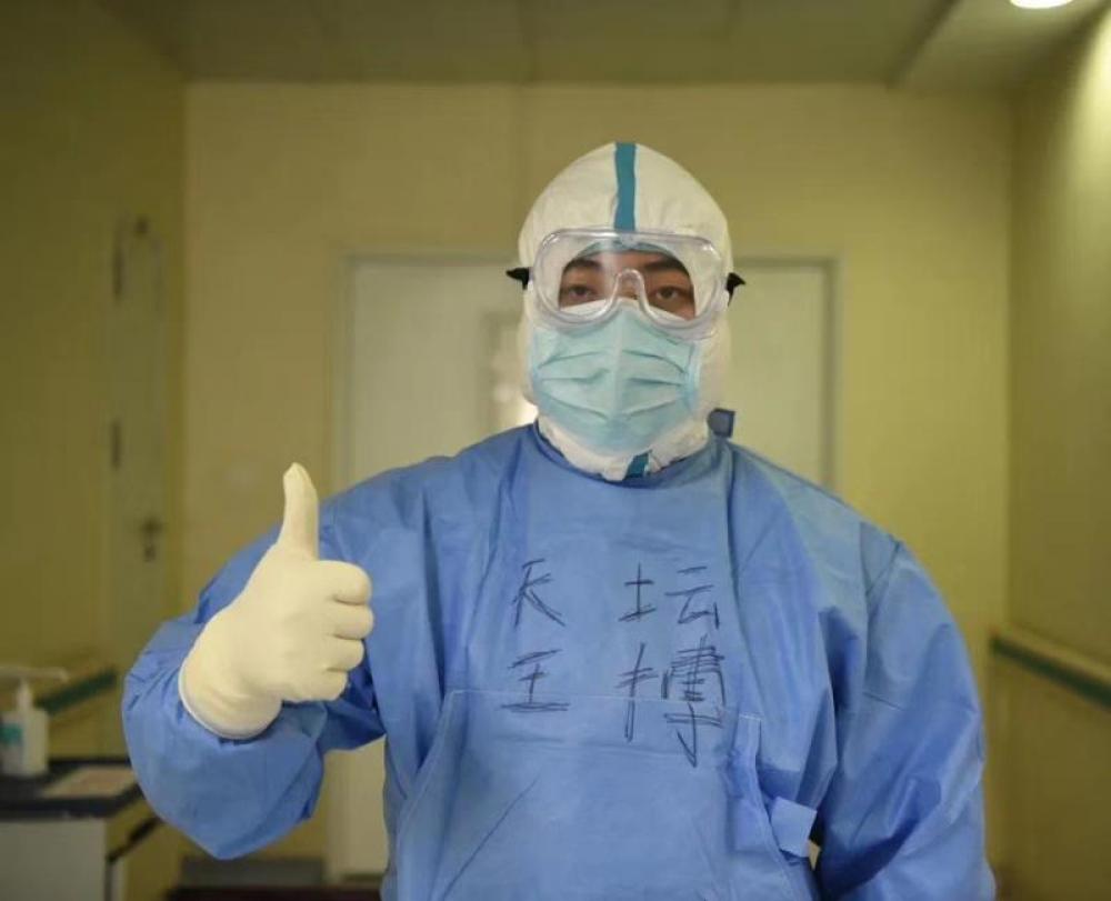 圖為北京天壇醫院支援武漢醫療隊王博在準備工作中。