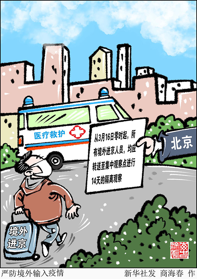 新華社北京3月15日電(記者魏夢佳)北京市人民政府副秘書長陳蓓15日表示,為有效防范境外疫情的輸入和擴散,從3月16日零時起,所有境外進京人員,均應轉送至集中觀察點進行14天的隔離觀察。集中觀察點將配置專業醫護和工作人員,定期開展健康監測,發現問題及時處理,使回國人員更安全、家人更放心。