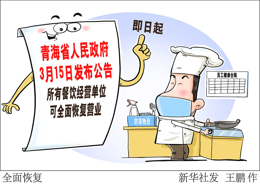 新華社西寧3月16日電(記者央秀達珍)青海省人民政府15日發布公告稱,全省所有餐飲經營單位(含酒店、餐館、早餐店、夜宵店等),即日起可全面恢復營業。