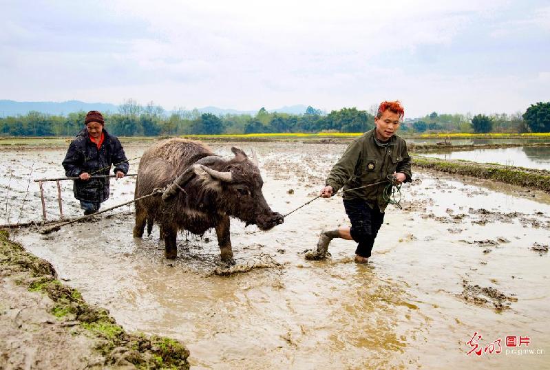 春分時節,人們珍惜當下光陰辛勤勞作,許下來年五谷豐登的美好心愿。(張倩)