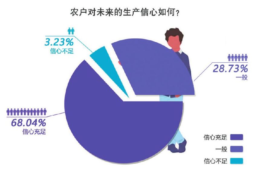 問卷調查顯示,68.04%的農戶表示對糧食生產未來“信心充足”,28.73%的農戶表示“信心一般”,信心不足的僅占3.23%。(見圖2)