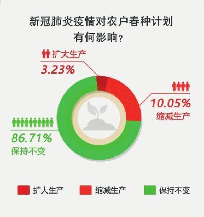 調查顯示,86.71%的農戶表示春種計劃保持不變,只有18戶(占3.23%)農戶表示將擴大生產,而56戶(占10.05%)農戶表示將縮減生產。(見圖3)