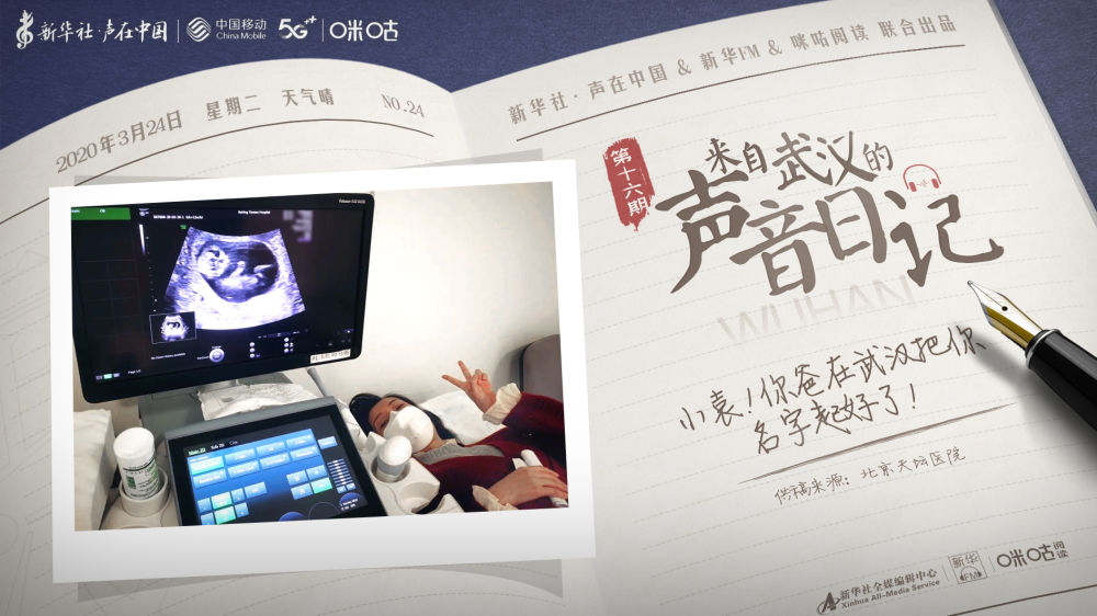 “從出發武漢當天,知道了你的存在,到今天看到你的樣子,在媽媽肚子里這么活潑可愛,爸爸心里特別開心,也特別激動。希望未來的你健健康康地長大,你是爸爸媽媽的驕傲。在以后的每一天,爸爸都會陪在你的身邊,做你最堅強的后盾?!?/p>