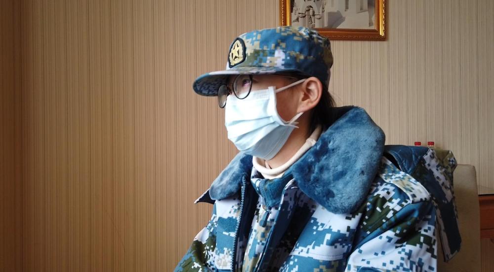 圖為解放軍援助湖北醫療隊隊員呂蓉在接受采訪。