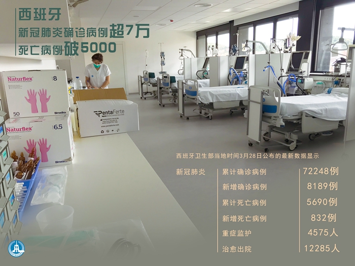 數據顯示,西班牙單日新增新冠肺炎確診病例8189例,累計確診病例已達72248例;單日新增死亡病例832例,累計死亡5690例;目前共有4575人正在重癥監護室接受治療,另有12285人治愈出院。