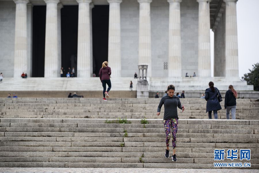 3月28日,在美國首都華盛頓,人們在林肯紀念堂附近參觀游覽。 新華社發(沈霆攝)