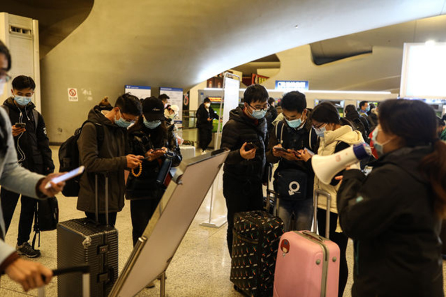 3月28日,武漢火車站,抵達的乘客在注冊健康碼。記者 趙迪/攝