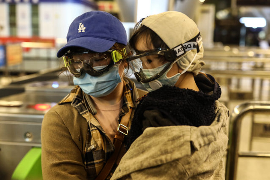 3月28日,武漢火車站,一名小女孩和媽媽準備乘坐地鐵回家。記者 趙迪/攝