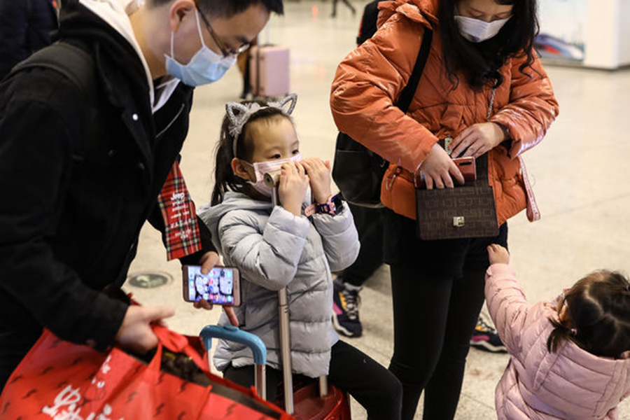 3月28日,武漢火車站,剛剛抵達的一家人。記者 趙迪/攝