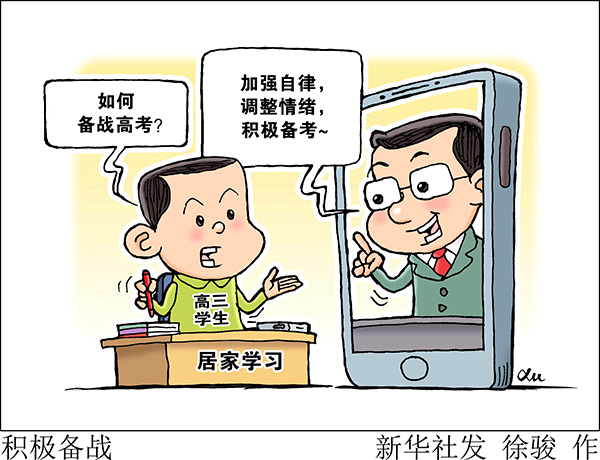 此外,華南師范大學附屬中學高三年級主管教學的年級組長任文韜說,“云備考”最大的挑戰是學生會感覺“一個人在戰斗”?!拔覀儼l現,長時間缺乏同學共同奮斗、老師面授叮囑等學校環境,令一些學生感到茫然甚至焦慮。居家學習給學生自我管理、任務規劃、情緒調節等方面帶來更大挑戰?!?/p>