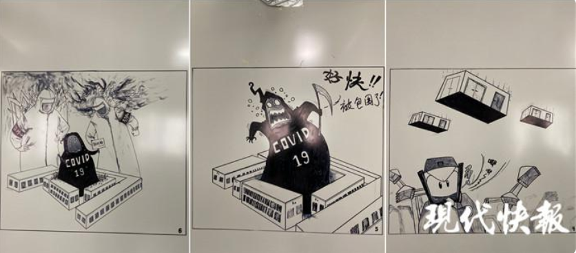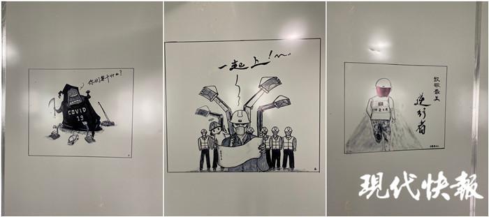 許新焰表示,他進入病區搶修線路時,他看到A2病區的護士在墻壁上畫了很多漫畫,從小就喜歡畫畫的他,頓時技癢難耐。" 剛開始還不敢畫,怕領導說我不務正業,偷偷地在電井里畫了工人維修水電的畫面。" 領導看到電井里的卡通畫后,主動找到許新焰,鼓勵他再畫一些能夠鼓舞斗志的漫畫。