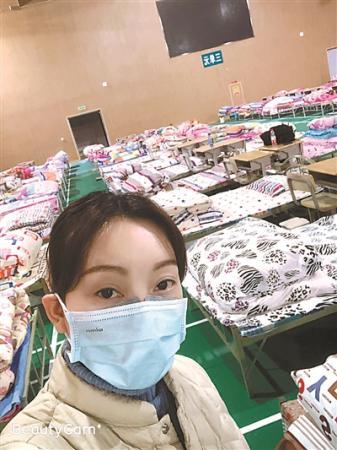 武漢病例暴增期間,各區的體育館開始改建成為方艙醫院。開院前大量的準備工作都需要人手,靳官萍就成為了其中一員?!拔胰サ氖呛樯襟w育館,第一批的三個方艙醫院之一?!?8小時之內就要把空曠的體育館改建成擺滿病床的醫院,志愿者們的壓力也不小。靳官萍負責鋪電熱毯、整理床單被套和患者的一人份生活用品,讓每個病人來了就能住下。