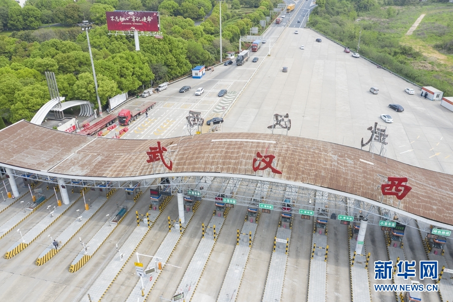 4月8日,車輛有序通過武漢西高速收費站(無人機照片)。新華社記者 才揚 攝