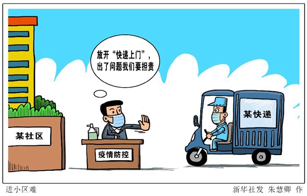 對此,社區基層干部坦言,盡管國內很多地區制定并下發“有序放開快遞、外賣人員進小區相關工作指南”,但很多社區仍處于“觀望”狀態?!澳壳胺酪吖ぷ饕廊怀跃o,每個小區的情況和能力不同。一旦放開‘快遞上門’,出了問題我們要擔責?!北本┮幻鐓^干部說。