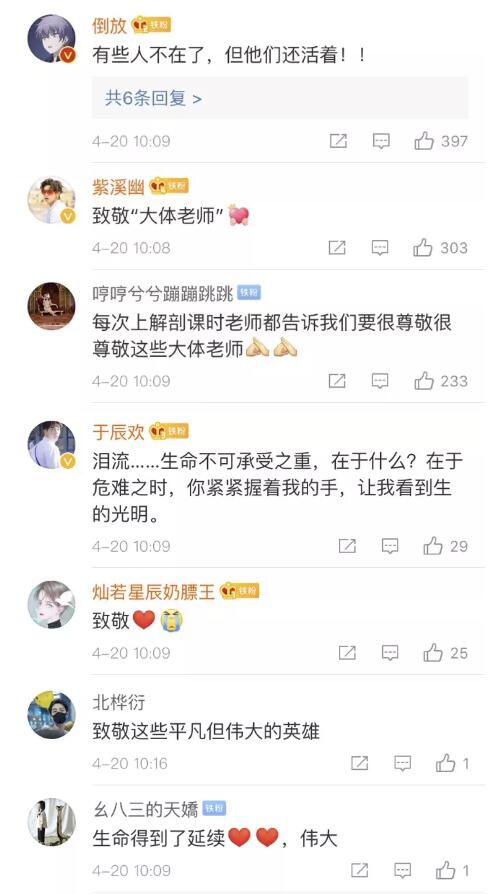 “感謝您及家人無私捐獻逝者遺體用于醫學研究,為我國抗擊新型冠狀病毒肺炎疫情作出突出貢獻。對您及家人的這種無私奉獻精神,我們表示由衷的欽佩!正是由于有你們的奉獻行動,醫學事業才得以推動進步和發展。謹向逝者致以深切的哀悼,并向您和家人表示崇高的敬意!”