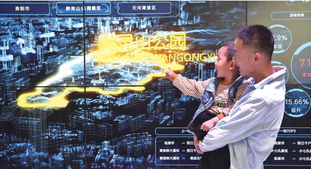 2019年5月26日,在貴陽舉行的2019中國國際大數據產業博覽會上,一對父子在參觀(歐東衢/攝)