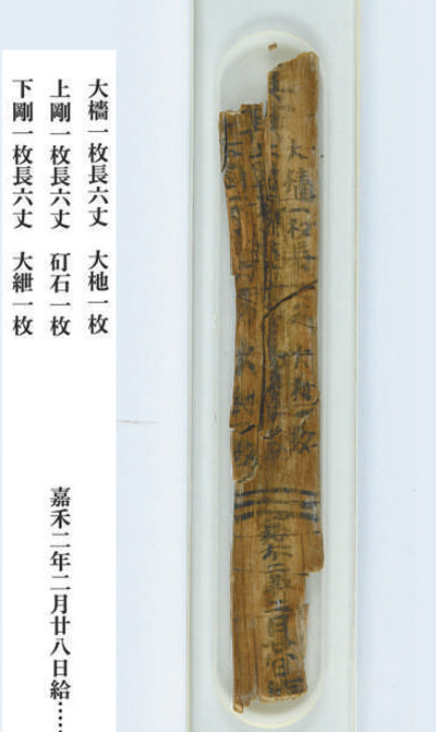 東吳占據著水網密布的江東地區,水軍的地位舉足輕重。滾滾長江是漢末三國的主戰場之一,赤壁之戰、夷陵之戰、廣陵之戰等大規模戰役都是水軍和戰船的重要舞臺。根據史書記載可知,當時的水軍規模和戰船體量都非常大,水戰戰術相當成熟。文獻提到的戰船種類有“蒙沖”“斗艦”“樓船”“走舸”等,分別承擔不同的作戰任務。目前尚未發現完整的東吳戰船遺物,不過從“三國展”中展示的長沙走馬樓吳簡里還是能夠一窺江東船舶的風采。其中一枚簡恰好記錄了船上所用的檣、矴、杝等部件,根據檣的尺寸可推測船長達17米左右。這枚簡也是古代帆船的珍貴資料之一。