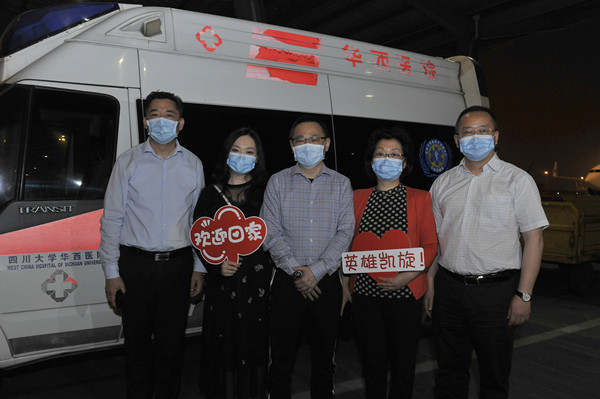 四川省衛生健康委黨組成員、副主任宋世貴受省應對新冠肺炎疫情防控應急指揮部副指揮長、省衛生健康委黨組書記沈驥、省應對新冠肺炎疫情防控應急指揮部副指揮長、省衛生健康委主任何延政的委托,與四川大學華西醫院副院長劉倫旭率領相關人員到機場迎接。宋世貴表示,四川堅決貫徹落實黨中央部署,堅持全國一盤棋,一方有難,八方支援,選派優秀的專家進行戰疫馳援。這次大災來了之后,康焰剛從武漢戰斗回到四川不到3天,又受國務院應對新型冠狀病毒肺炎疫情聯防聯控機制醫療救治組委派,轉戰綏芬河、牡丹江,一直在前方堅持戰疫,工作很出色,是全省衛生健康系統的優秀代表,也得到了國家衛健委的充分肯定。