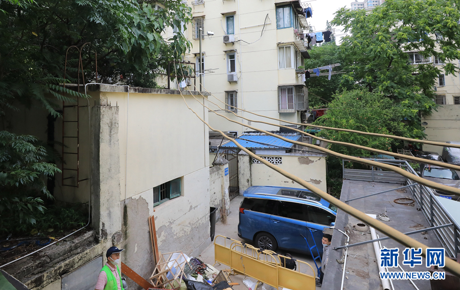 這是上海江蘇路街道武定西路一處居民區內的建筑垃圾堆放點,畫面右側電線遠端可見安裝有人工智能攝像頭,當建筑垃圾堆積高度到達設定值時,攝像頭會向上海江蘇路街道城運中心發出報警信息(6月8日攝)。 新華社記者 方喆攝