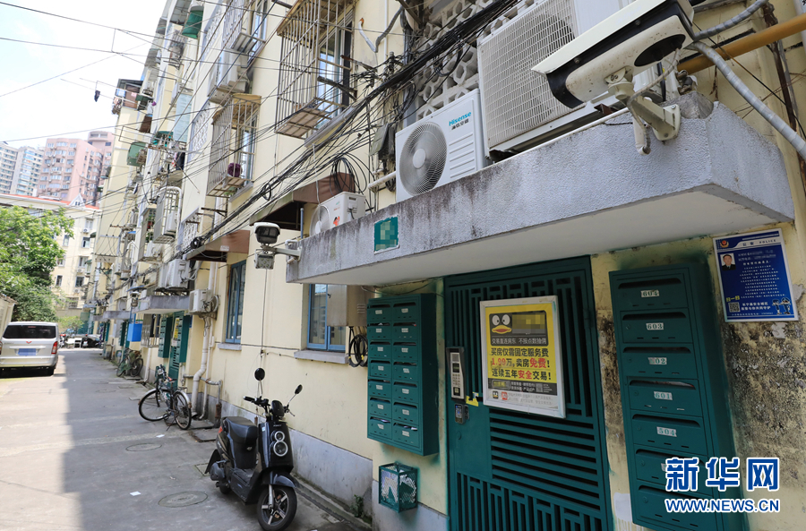 這是上海江蘇路街道一居民樓單元門上安裝的與上海江蘇路街道城運中心聯網的攝像設備(6月8日攝)。新華社記者 方喆攝