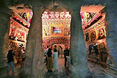 浙大師生在參觀云岡石窟第12窟復制窟。盧紹慶攝/光明圖片