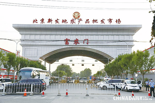 6月12日0時至24時,北京市豐臺區共報告5例新冠肺炎確診病例。病例行動軌跡涉及新發地批發市場部分商戶,目前新發地批發市場及周邊小區已采取封閉管理措施。上圖為已采取封閉管理措施的新發地批發市場外景。武曉慧 攝