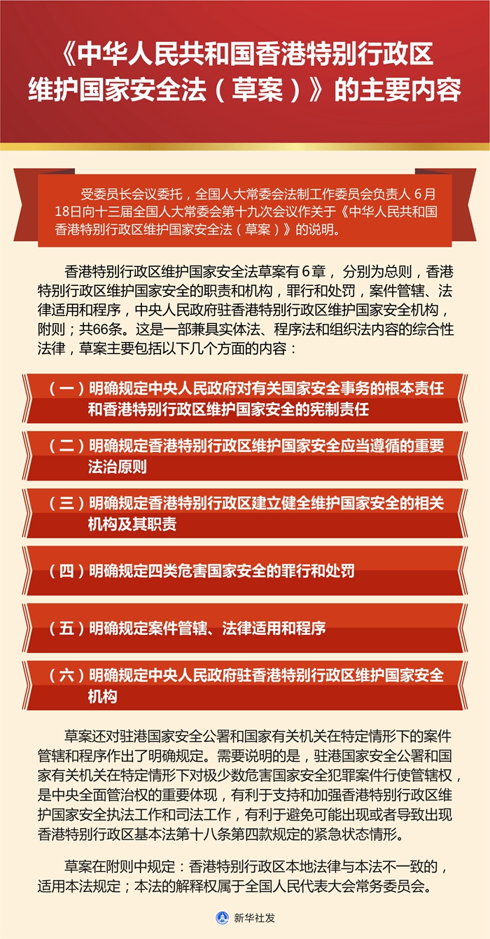 新華社北京6月20日電 受委員長會議委托,全國人大常委會法制工作委員會負責人6月18日向十三屆全國人大常委會第十九次會議作關于《中華人民共和國香港特別行政區維護國家安全法(草案)》的說明,摘要如下。