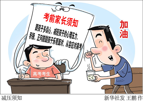 在緩解考生心理壓力上,關鍵提示提醒家長考前要按照高考的時間安排調整孩子作息,根據孩子的身體素質,選擇適合的運動項目和方式稍作放松,高考期間不可運動過量。同時,家長要關注孩子的心理狀態,營造溫馨、放松的家庭氛圍??梢愿⒆佣嗾勑?,減輕孩子的心理壓力,積極、正向鼓勵孩子樂觀面對、從容應對高考。