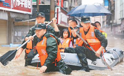 防汛救災刻不容緩,各方力量都積極行動起來。入汛以來,全國消防救援隊伍共參加各類抗洪搶險救援7961起,出動消防指戰員9.57萬人次。解放軍、武警官兵走上防汛抗洪一線,發揮了中流砥柱作用。社會救援力量也積極參與,為搶險救災出人出力。這當中,許多眾志成城、戰勝洪災的故事,令人感動。