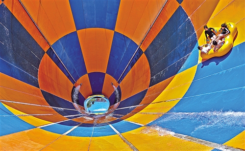 日前,游客在山東煙臺37度夢幻海水樂園體驗“深海龍卷風”游樂項目。孫文潭攝(中經視覺)