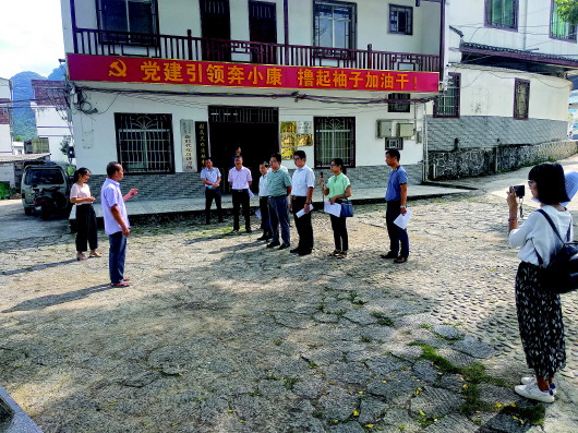 7月30日,韋煥能(左二)向前來合寨村調研的人士介紹合寨村村民自治情況。黃建峰攝