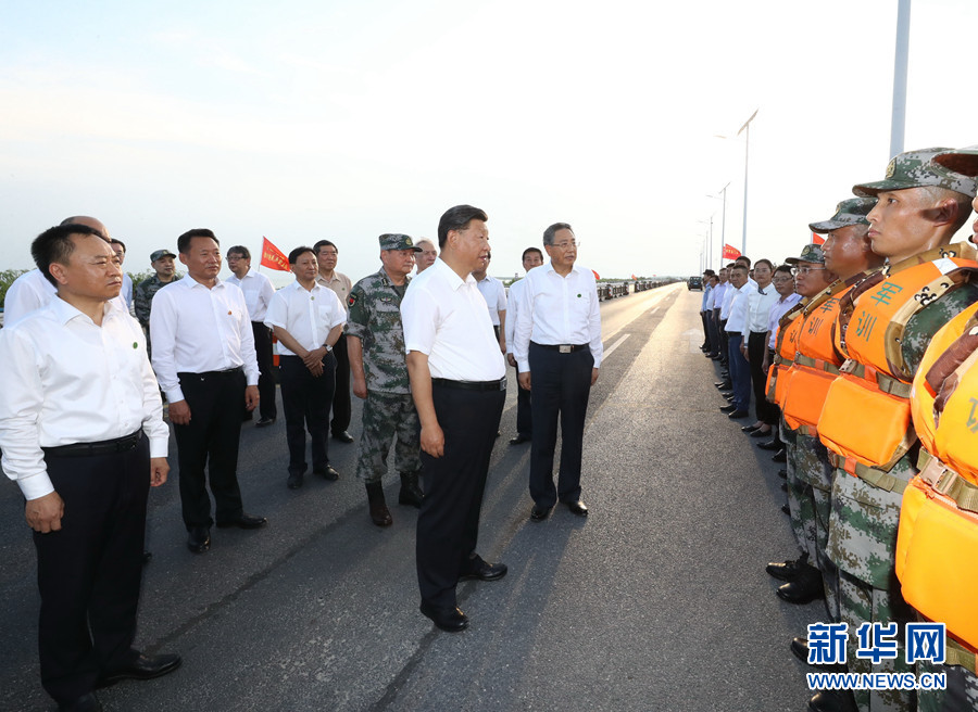 大堤上,習近平親切看望慰問了在防汛抗洪救災斗爭中犧牲同志的家屬、防汛抗洪一線人員、先進典型代表和參加抗洪搶險的部隊官兵,并向全國奮戰在防汛抗洪救災一線的同志們表示誠摯的問候。他強調,今年入汛以來,南北方江河湖泊接連出現超警戒水位險情。廣大干部群眾和人民解放軍、武警官兵堅決響應黨和政府號召,發揚不怕累苦、不怕疲勞、不怕犧牲的精神斗志,堅守在防汛抗洪救災第一線,涌現了許多先進典型和感人事跡,展現了中國人民眾志成城、頑強拼搏、敢于勝利的英雄氣概,書寫了洪水無情人有情的人間大愛。黨和人民感謝你們!