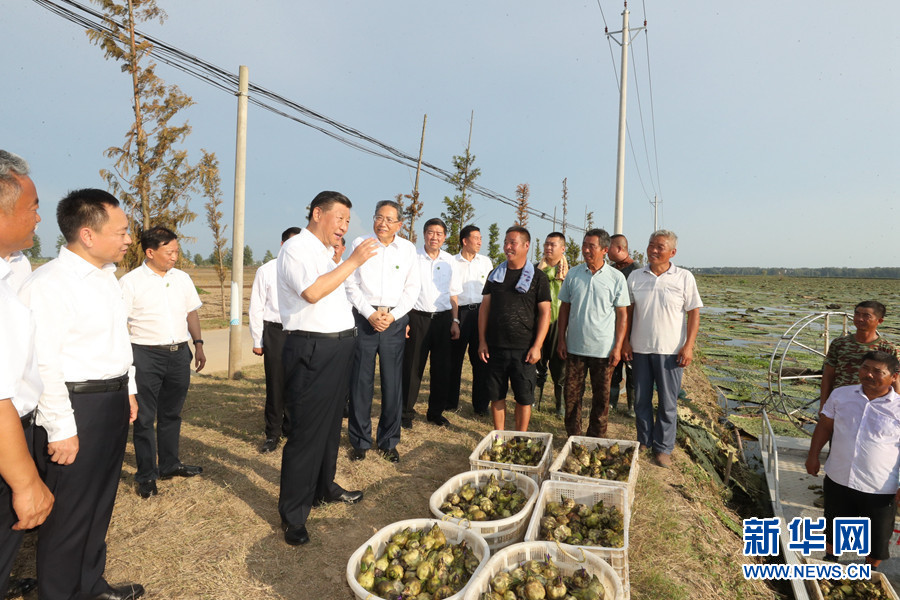 8月18日至21日,中共中央總書記、國家主席、中央軍委主席習近平在安徽省考察。這是18日下午,習近平在阜陽市阜南縣蒙洼蓄洪區,同正在勞作的鄉親們親切交流。 新華社記者 鞠鵬 攝