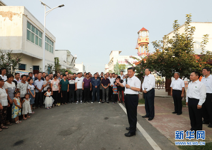 8月18日至21日,中共中央總書記、國家主席、中央軍委主席習近平在安徽省考察。這是18日下午,習近平在阜陽市阜南縣蒙洼蓄洪區曹集鎮利民村西田坡莊臺,看望慰問受災群眾。 新華社記者 鞠鵬 攝