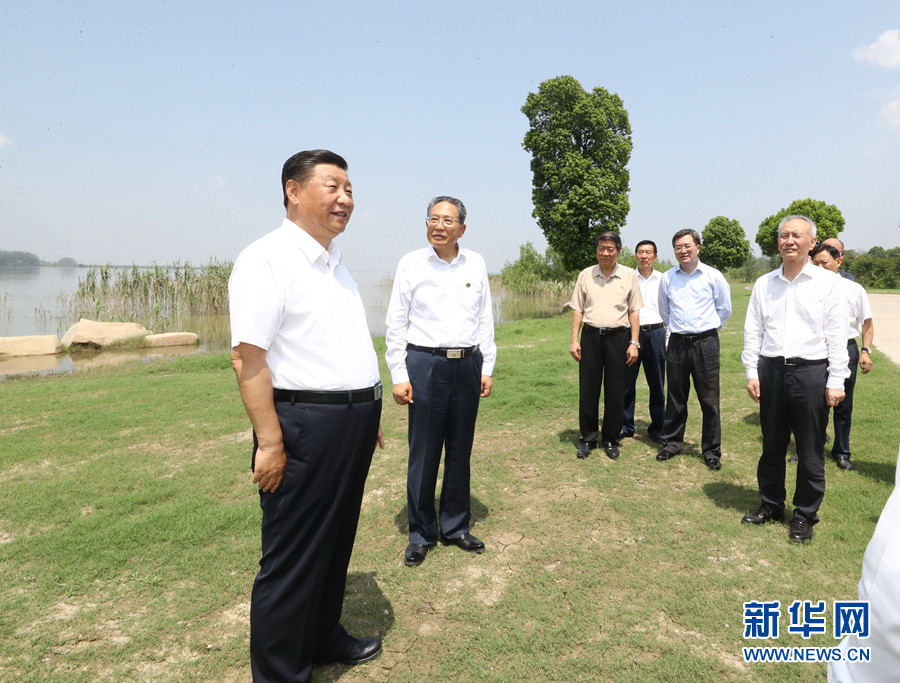8月18日至21日,中共中央總書記、國家主席、中央軍委主席習近平在安徽省考察。這是19日下午,習近平在合肥市肥東縣十八聯圩生態濕地蓄洪區巢湖大堤羅家疃段考察,了解當地防汛抗洪和巢湖綜合治理情況。 新華社記者 王曄 攝