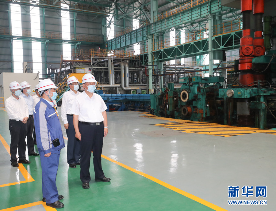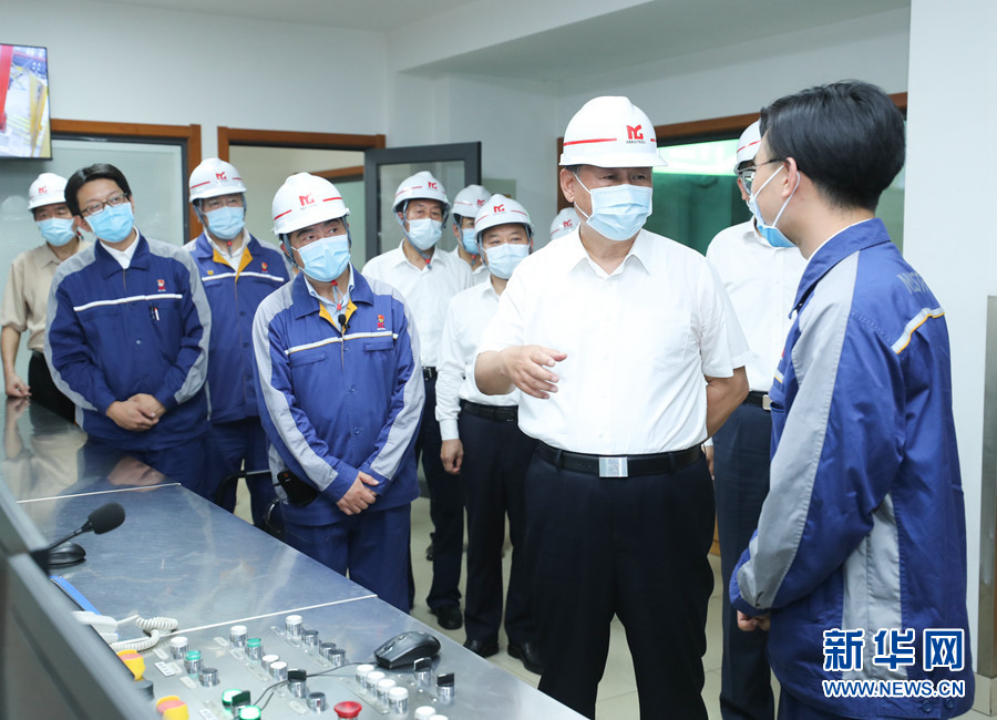 8月18日至21日,中共中央總書記、國家主席、中央軍委主席習近平在安徽省考察。這是19日上午,習近平在馬鞍山市中國寶武馬鋼集團優質合金棒材車間考察,了解企業復工復產和經營情況。 新華社記者 王曄 攝