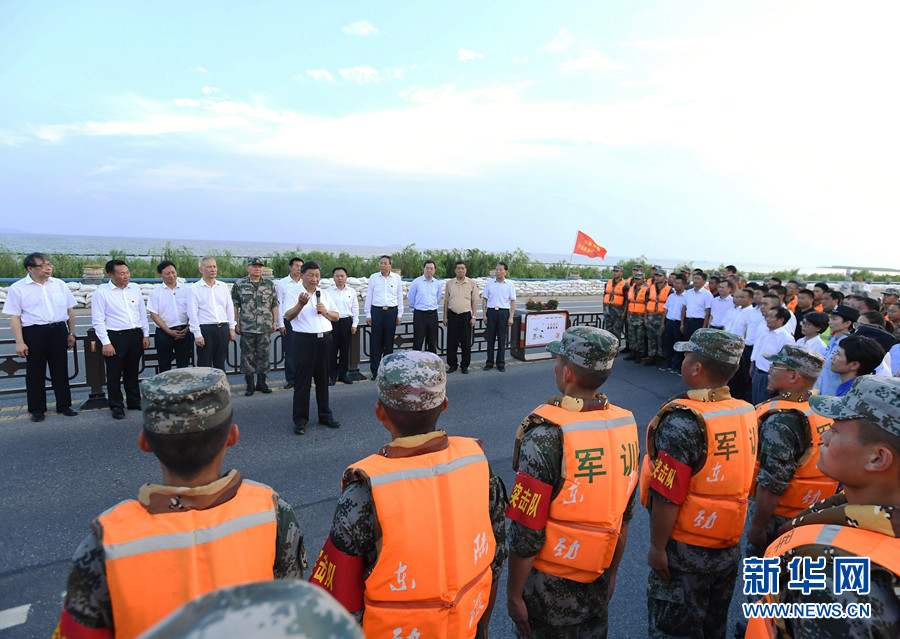19日下午,習近平來到合肥市肥東縣十八聯圩生態濕地蓄洪區巢湖大堤羅家疃段考察。今年入汛以來,巢湖水位多次突破歷史極值,合肥市主動啟用十八聯圩及周邊圩區蓄洪。習近平仔細察看巢湖水勢水情,聽取環巢湖主要圩口分洪及周邊濕地蓄洪、巢湖綜合治理情況匯報,了解防汛物資和大堤加固情況。他強調,要堅持濕地蓄洪區的定位和規劃,盡快恢復生態濕地蓄洪區的行蓄洪功能和生態保護功能。他指出,當前,南方有關地方要繼續抓好防汛救災工作,同時要嚴防次生災害。北方有關地方要對可能發生的汛情加強警戒和防范,全面落實防汛救災各項工作,確保安全度汛,確保人民群眾生命財產安全。