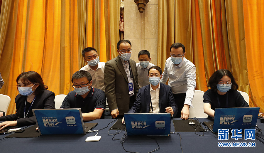 9月27日,由中央網信辦、上海市委網信委、新華通訊社聯合主辦的“2020中國網絡媒體論壇”在上海開幕。來自政府、學界、業界的嘉賓圍繞“變局中開新局:中國網絡媒體的責任與使命”這一核心主題展開深入探討和交流。圖為新華網對主論壇進行網絡直播。新華網 陳杰 攝