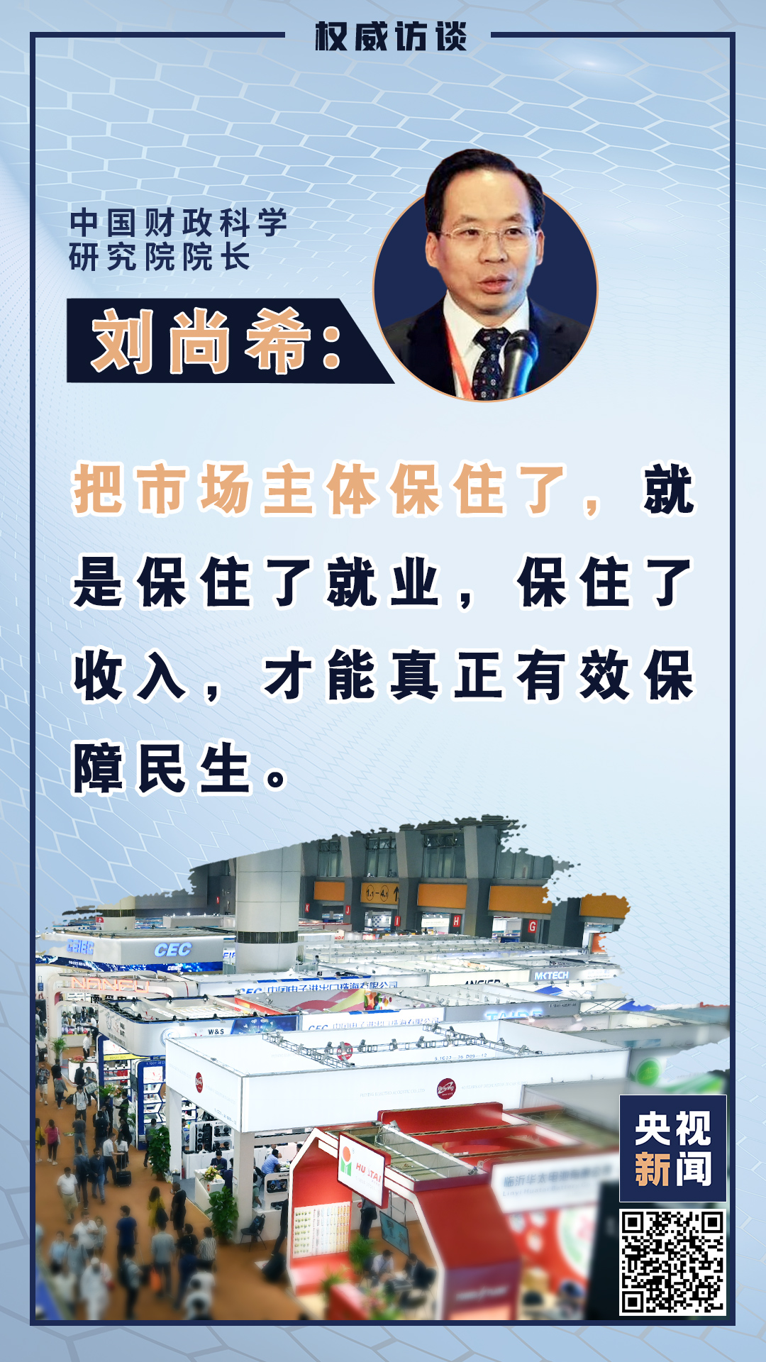 市場主體是經濟的力量載體,保市場主體就是保社會生產力。在當前經濟形勢下,如何保市場主體來助力加快形成以國內大循環為主體、國內國際雙循環相互促進的新發展格局?今天權威訪談來看記者對中國財政科學研究院院長劉尚希的專訪。