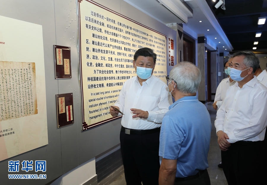 10月12日至13日,中共中央總書記、國家主席、中央軍委主席習近平在廣東考察。這是13日下午,習近平在汕頭市小公園開埠區僑批文物館考察,了解僑批歷史和潮汕華僑文化。 新華社記者 王曄 攝
