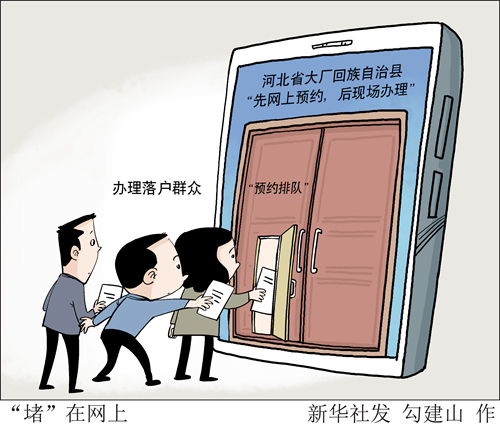 辦理落戶需要多長時間?河北省大廠回族自治縣公安局通過開展“先網上預約,后現場辦理”給出的答案是:周一至周五,每天發放“人才、務工、經商落戶”號47個,由于號源供需失衡,辦事群眾反映,被“堵”在網上預約環節普遍超過1個月,有的甚至等待近4個月。這種“方便自己,為難群眾”的部門做法,隨著國務院督查組的介入,有望得到解決。