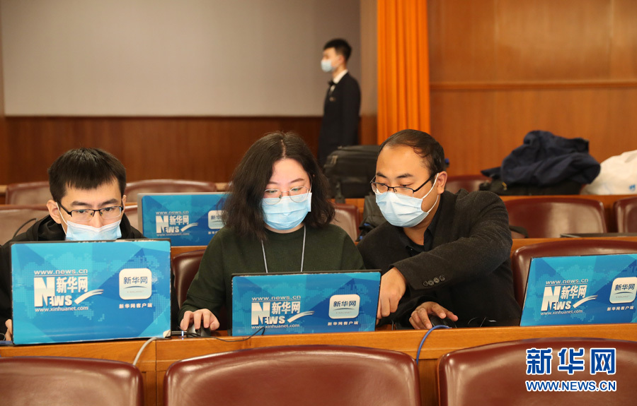 ??? 10月23日,紀念中國人民志愿軍抗美援朝出國作戰70周年大會在北京人民大會堂隆重舉行。圖為新華網現場直播團隊。(新華網 翟子赫 攝)