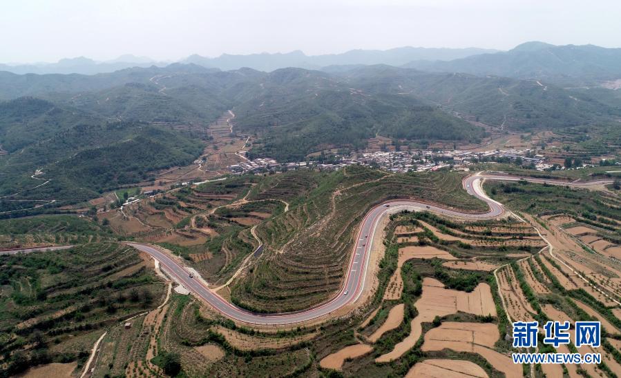 這是6月7日拍攝的“井陘太行天路”(無人機照片)。這條旅游專用公路將井陘縣的26個古村落串連在一起。新華社發(梁子棟 攝)