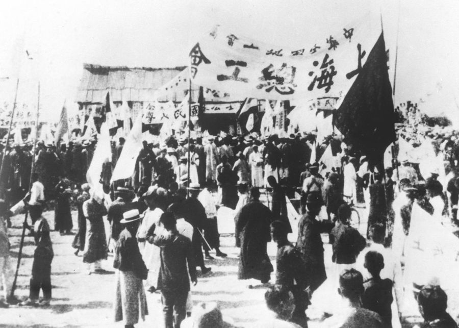 圖為五卅運動爆發時上??偣挠涡嘘犖?新華社圖片