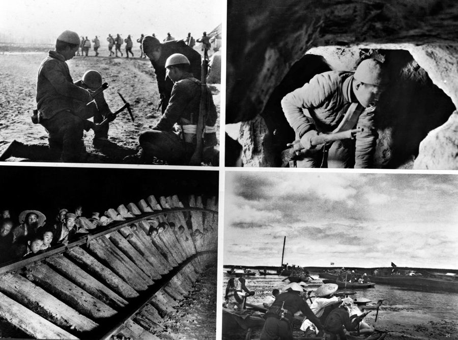 在反“掃蕩”、反“清鄉”的斗爭中,華北平原敵后軍民創造了很多有效的殲敵方法,發展了人民戰爭的戰略戰術,狠狠打擊了日寇。上圖左:地雷戰。上圖右:地道戰。下圖左:破襲戰。下圖右:水上游擊戰。 新華社圖片
