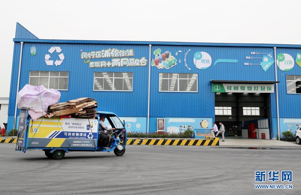 一輛可回收物清運車駛入上海閔行區浦錦街道的“兩網融合”中轉服務站(2020年5月27日攝)。新華社記者 方喆 攝